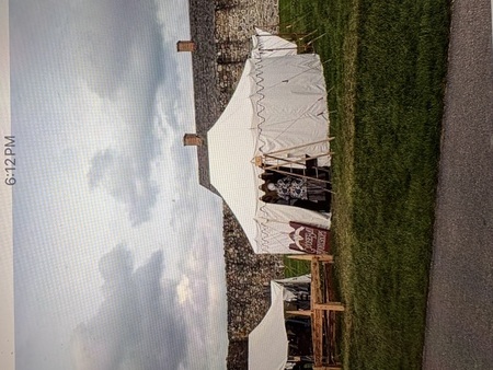 Used 3 times, a 12x18 oval marquee, 13oz sunforger canvas with 6ft 6inch tall walls, Scalloped edge, with a 12x12 dining fly with edging and grommets every 3 feet. Comes with all poles,ridge and 11 foot uprights, with. 18 poles painted red.ropes and tensioners included…cost 2000 new, asking $1000 …must be picked up in Delaware.