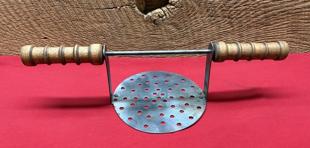 Our porridge pot, only about 4 inches across the top, along with the 6 hammers...some homemade , needed to get it into shape. It is hammered from the inside (!) and requires 5 annealings and just about 3 days work, finishing and cleaning included. Thought you might like to see it.